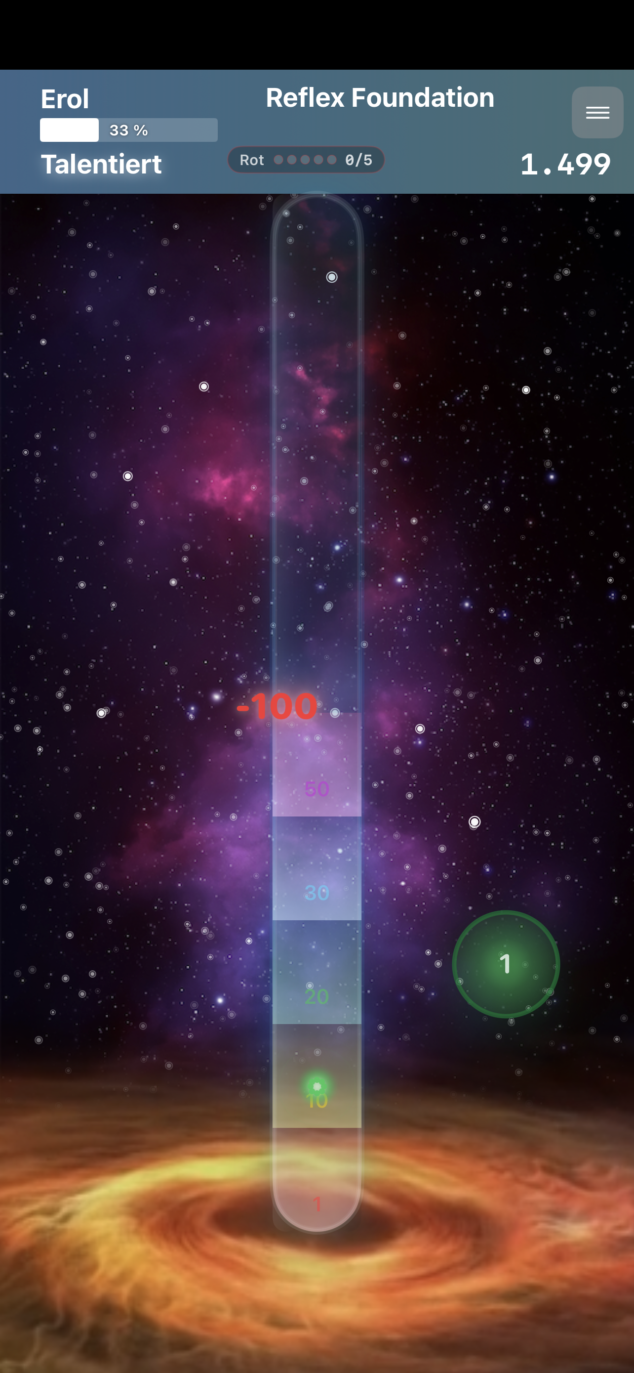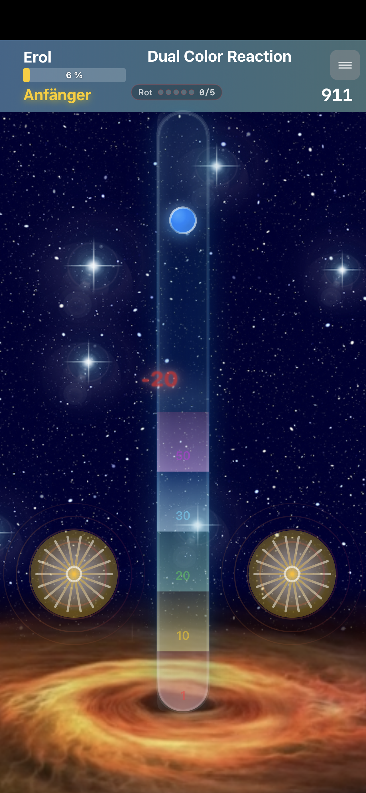• Wenn du ein rotes Atom abschießt, wird der Zähler wieder auf 0 gesetzt.